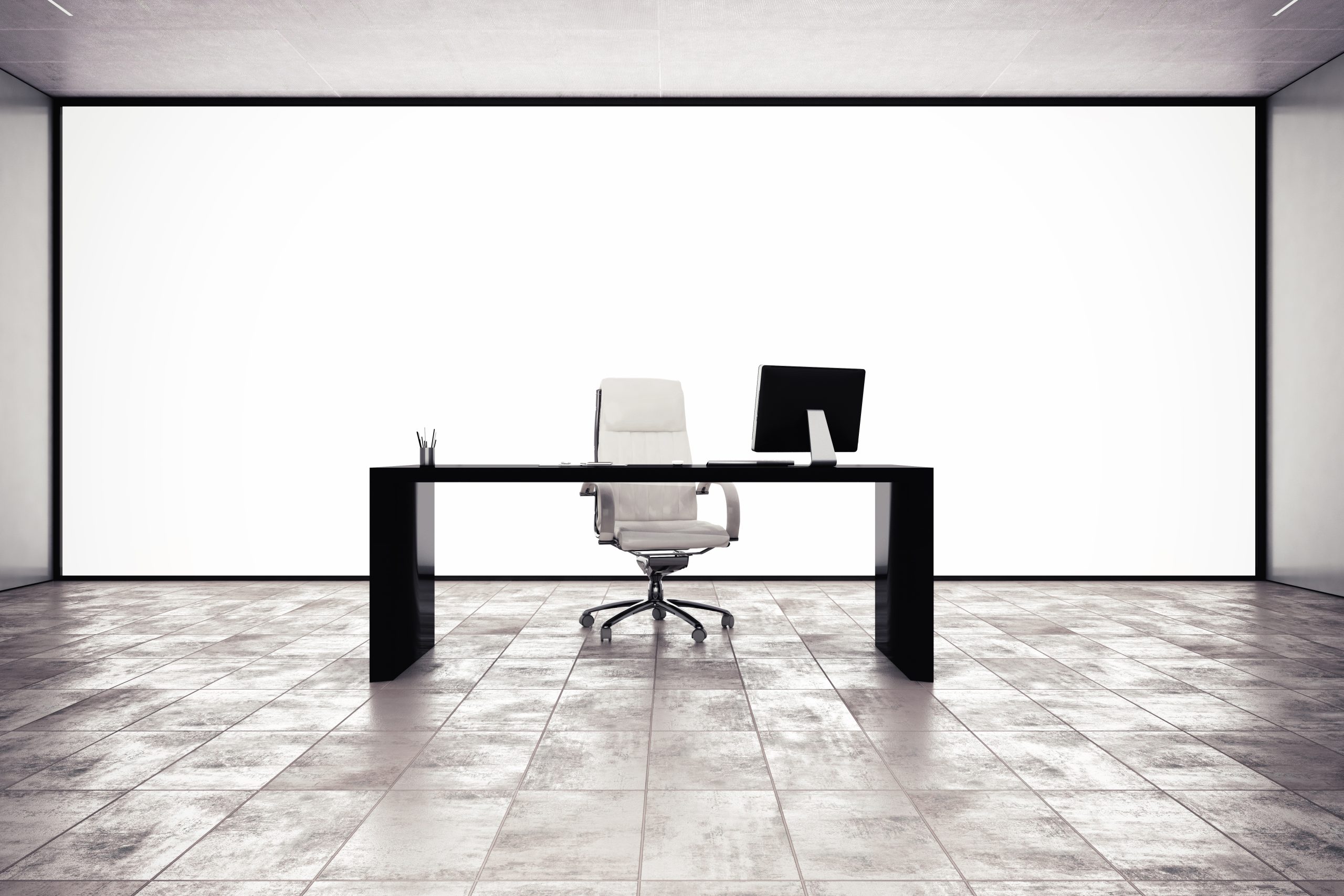 Executive office with desk chair and computer